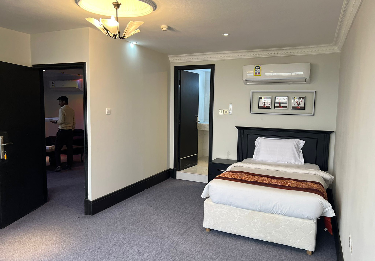 - Type 1: Two bedrooms — one with a king-sized bed and the other with a single bed — along with a spacious hall and two bathrooms.
